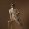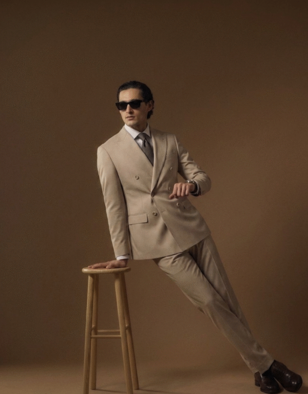 FORMAL BEIGE DOUBLE BREAST SUIT — A MODERN CLASSIC TAILORED IN PREMIUM ITALIAN FABRIC FOR A REFINED AND FORMAL PRESENCE.