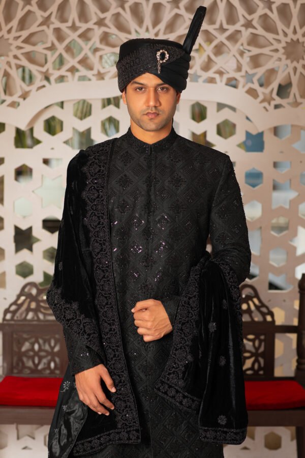 Black Hand Embroidered Sherwani (MTO ONLY)