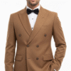 CRAFTED IN RICH CARAMEL WOOL FABRIC (ITALIAN), THIS DOUBLE-BREASTED SUIT WITH PEAK LAPELS DELIVERS A POWERFUL, REFINED SILHOUETTE. DESIGNED FOR CONFIDENT ELEGANCE AND MODERN STYLE.