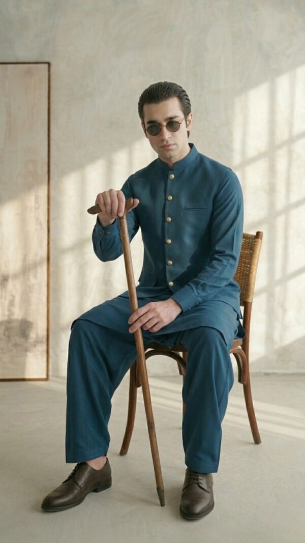 TEAL BLUE KURTA, PAJAMA & WAIST COAT — A BOLD, ELEGANT TONAL SET WITH A CLEAN, ROYAL FINISH.