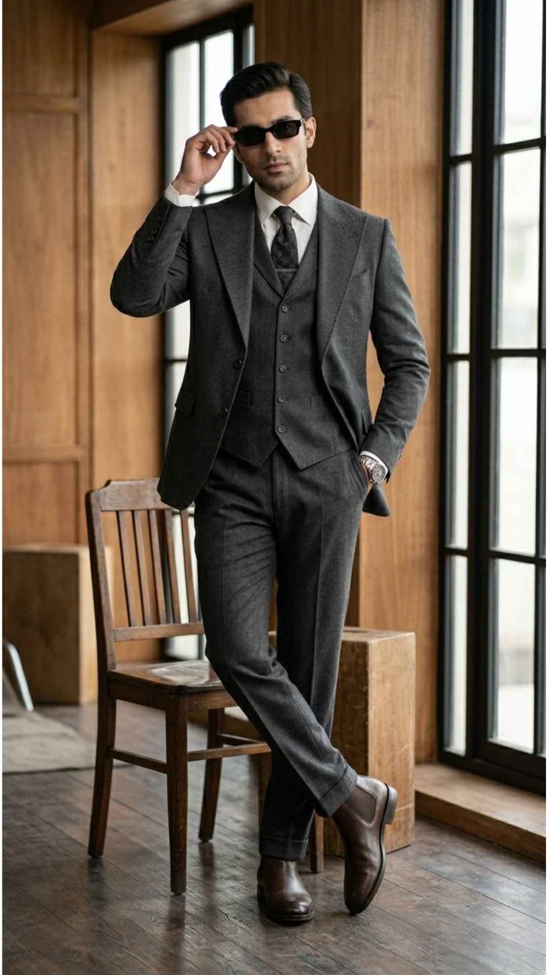 CHARCOAL GRAY SUIT — A SHARP, MODERN CLASSIC TAILORED IN PREMIUM ITALIAN FABRIC FOR A REFINED AND POWERFUL FORMAL PRESENCE.